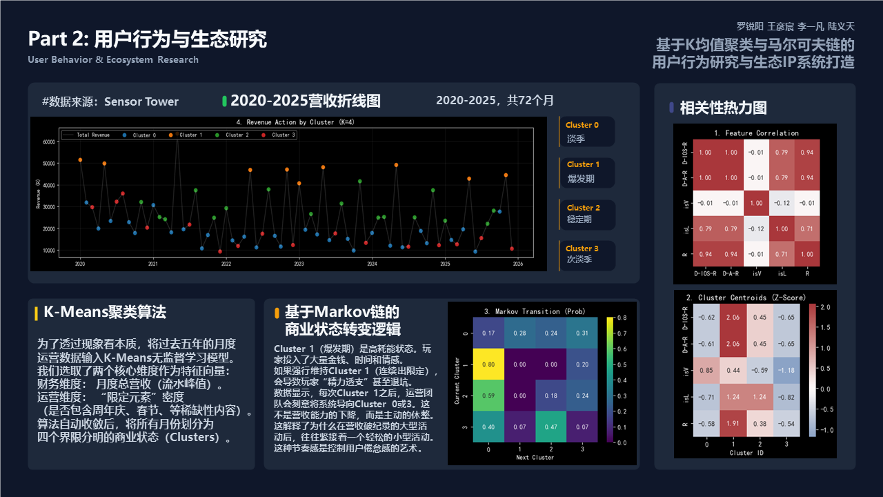 DESC: An analysis of the user ecosystem and user stickiness based on cluster analysis and Markov chain modeling.